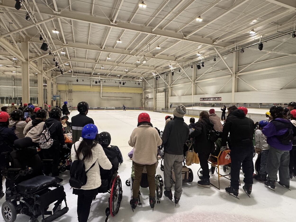 車いす、バギー、歩行器でも、リンク内に入り、氷上を滑る体験を楽しみましょう。