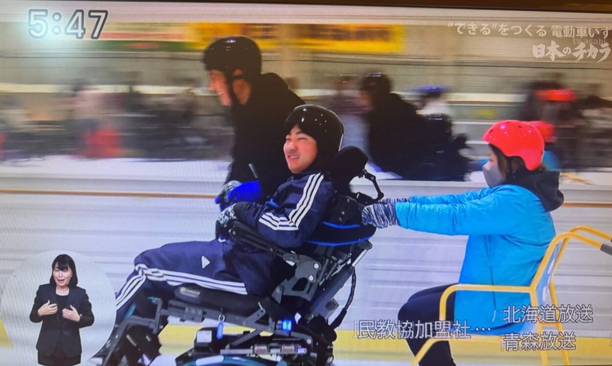 氷上体験の様子も取材され放送されました。